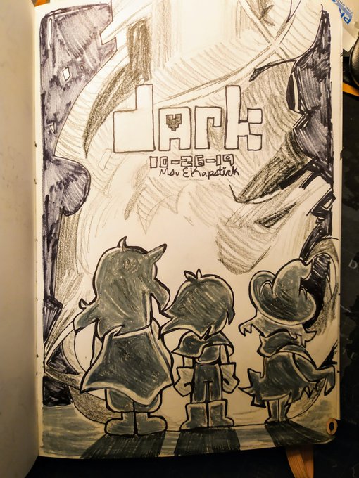 #Inktober2019 #inktoberday26 #DELTARUNE #kris #susie #ralsei InkTober: Day 26 - Dark The gang at the Dark Fountain ready to be heroes ✨💙