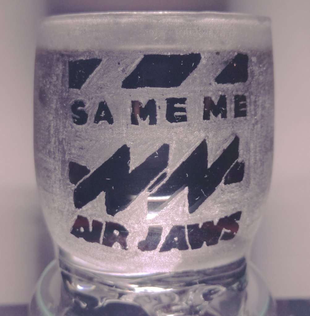 8 18 今回のグラスは飛鮫ナミちゃんのパーカーにあるロゴを彫らせて頂きました! そして何時もとは全く逆の彫り方でチャレンジ! 基本的にこんな彫り方はしませんw #凪波あーと #ナギナミ #ナギナ民 21/03/23 00:59