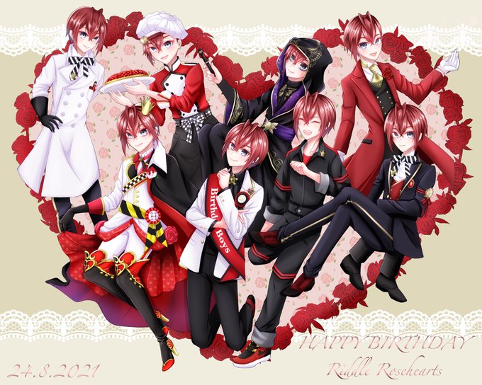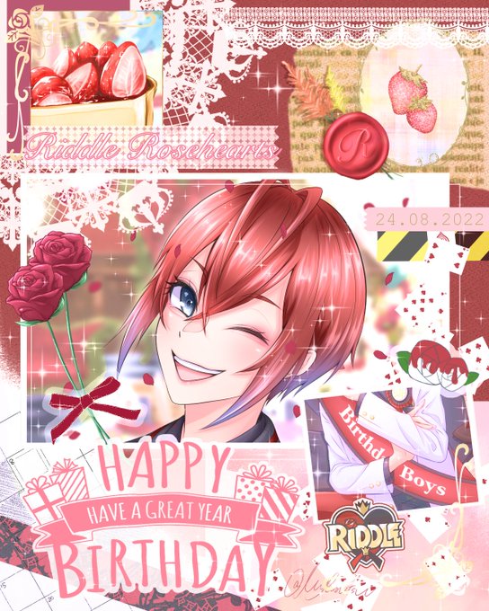 リドルくん!! お誕生日おめでとうございます!🎂🎉❤️ 生まれてきてくれて本当にありがとう!今日は目一杯楽しんでね!🥰 これからもずっと大好きです💕 #リドル・ローズハートくんお誕生日会 #リドル・ローズハート生誕祭2022 #リドル・ローズハート誕生祭2022 #twstファンアート 🌹