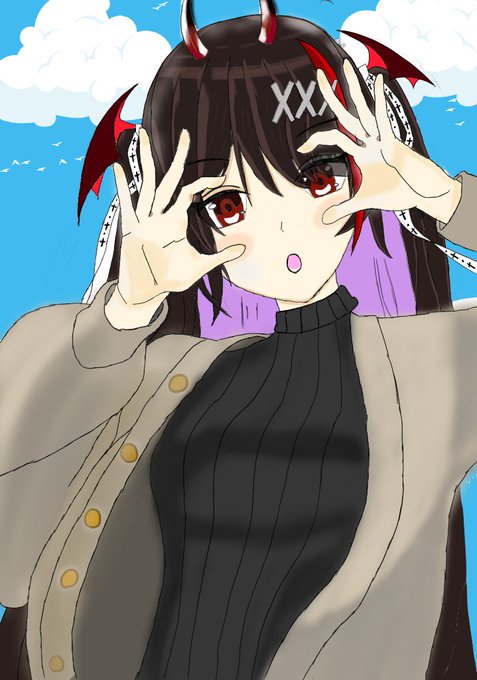 #逢魔きらら #あくまびじゅつかん 手で輪をつくるイラストを見てきららちゃまで描きたくて描きました! 背景を空にしたら、個人的にデートしているような感じになり良い感じに可愛くなったと思ってますw