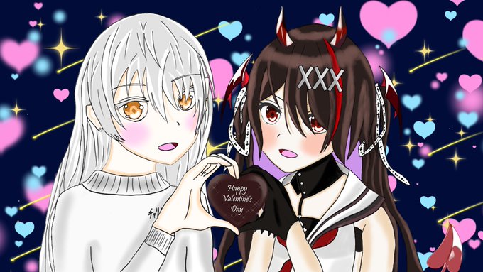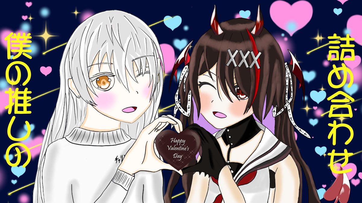 #しまこばこ #あくまびじゅつかん 初めにごめんなさい。これは僕のエゴです。 しかし、最終日前日というのとバレンタインというのもあり、僕の最推しを詰め合わせてみました。 個人的には描いていても、描き終わっても、何度見ても、とても幸せな一枚になったなと思っています。