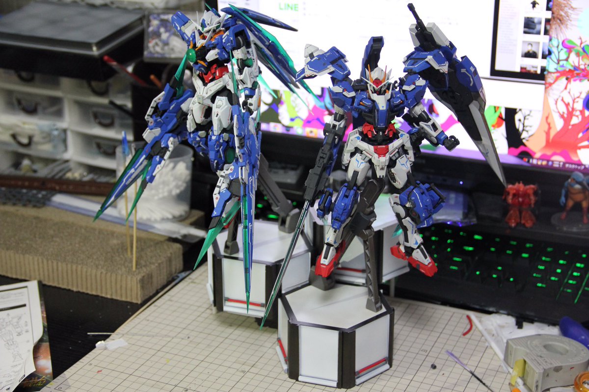 70 252 クアンタ、台座完成しました( ᵕᴗᵕ ) クアンタはOOガンダム同様にムキムキにしました。台座の方はシンプルに仕上げました(^^♪ お時間がある時にでもご覧頂けたらと存じます。 #ガンプラ 18/11/10 18:31