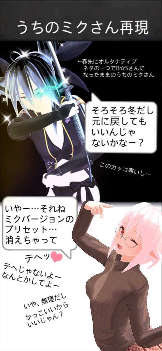 4 74 #カスタムキャスト おはようございます! そういえばうちにもミクさん再現キャラいたのでした! しばらくずっとブラックロックシューターコスプレしてもらってたので忘れかけてましたが…! 20/11/24 07:00