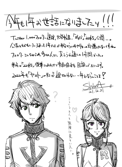 9 62 冥王星沖の興奮も冷めやらぬ中ですが描き納め。この2人なしに2021年は語れませんね。1年間ありがとうございました! 21/12/31 23:31