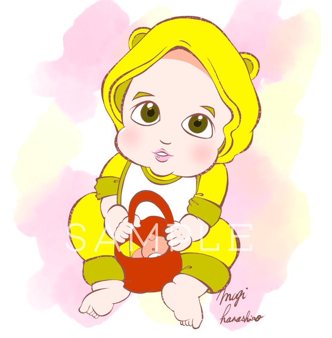 くまちゃんが好きな赤ちゃんのイラスト⑅◡̈* 線画にキラキラを重ねて赤ちゃん肌のツヤ感をたました #イラスト #illustration #似顔絵 #赤ちゃん #キャラクター風イラスト #ココナラ出品中 #kids #art #アイコン描きます