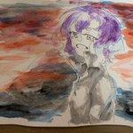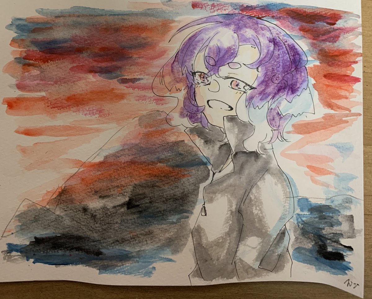 日が落ちるまでの時間。久しぶりの水彩 #bintrollFA