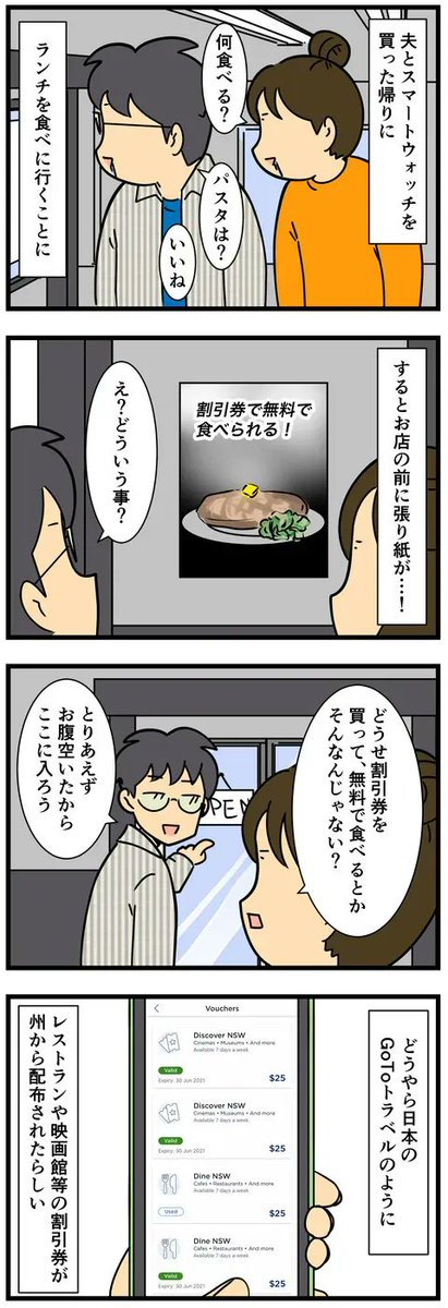 1 3 2年前、シドニーでは割引券が配布されて 映画やレストランが無料だったんだぜ #漫画が読めるハッシュタグ 23/01/21 06:00