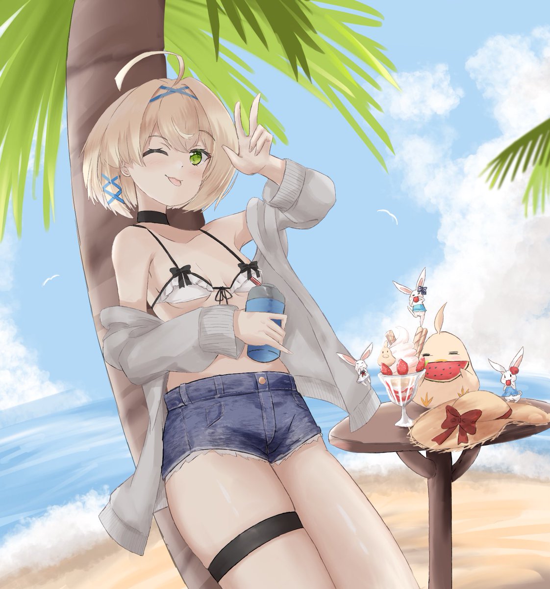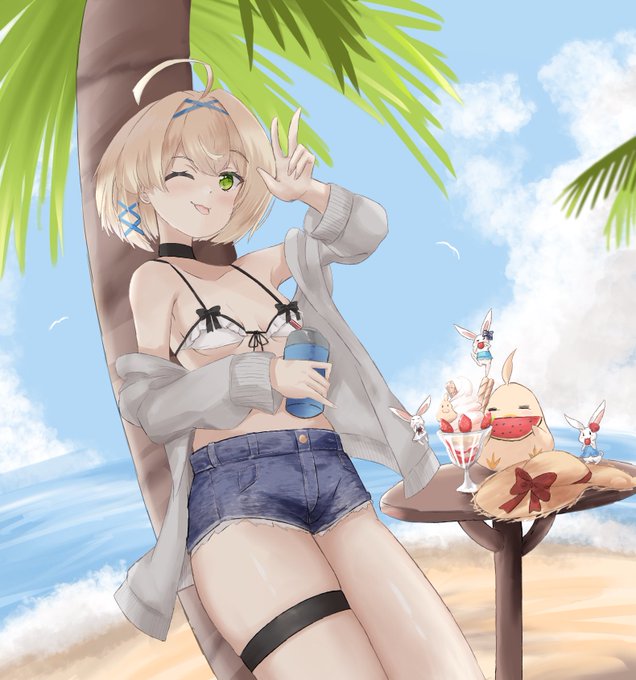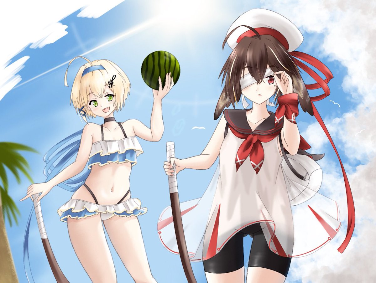 #夏が終わりそうだし今年描いた水着絵を貼ろう 肌塗り苦手すぎてあまり描いてないわね…