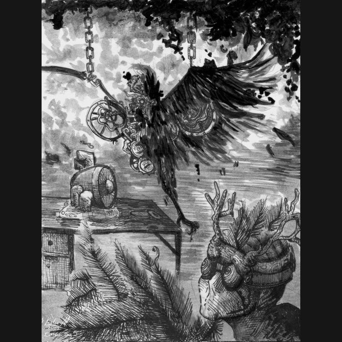 Buque. El carguero, el buque y tres coronas. Y no tan tarde como ayer :D #inktober2021 #inktober #Day3 #inktober2021day3