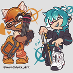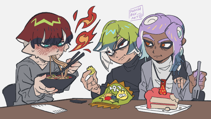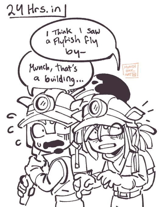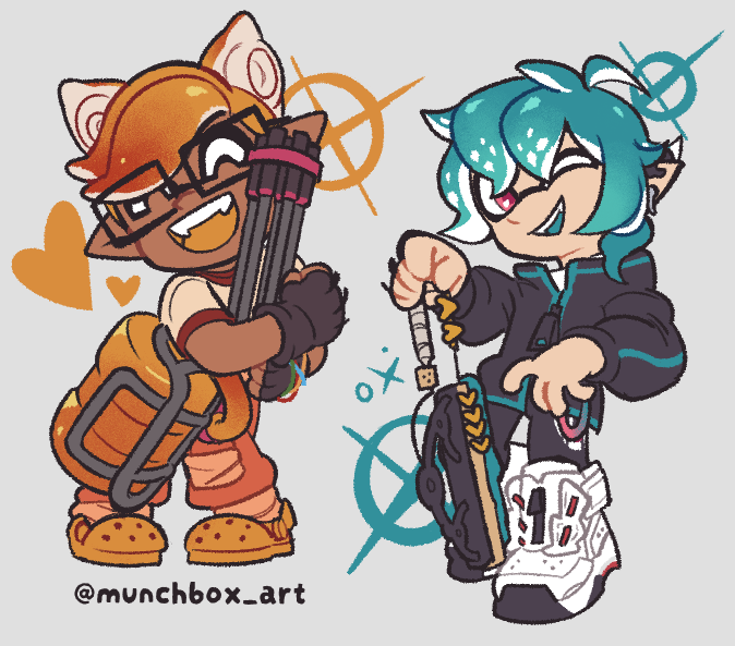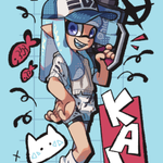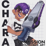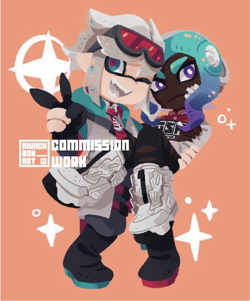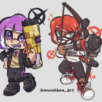 Here's the piece by itself, my in-game character from my smurf account + @kaisa_sukopu 's character (thank you for letting me draw them!) #splatoon #splatoon3