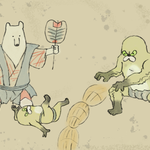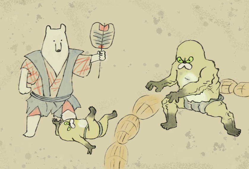 耳鳥斎の地獄図巻、相撲取りの地獄(勝てない相撲をずっと取り続けなければならない地獄だそう)…よりムジ相撲の地獄を描いてみたファン絵です。#ムジーナ