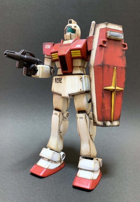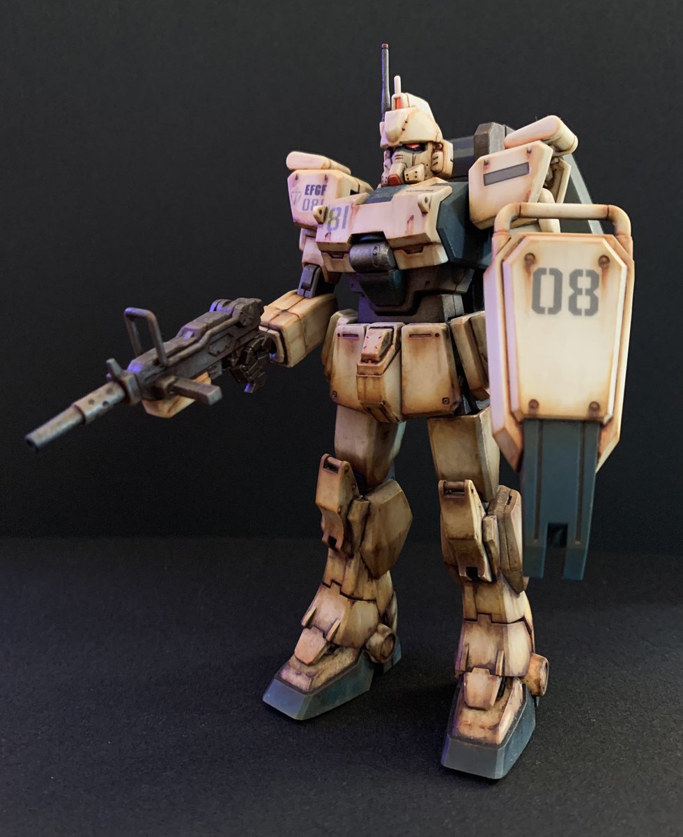 #ガンプラ #ガンプラ好きと繋がりたい エコプラのHGジム完成しました☺️ 普段、部分塗装くらいしかしないので大変だった…🤣 ジムのシンプルなデザインと雰囲気を残しつつやり過ぎない程度にウェザリングしました。
