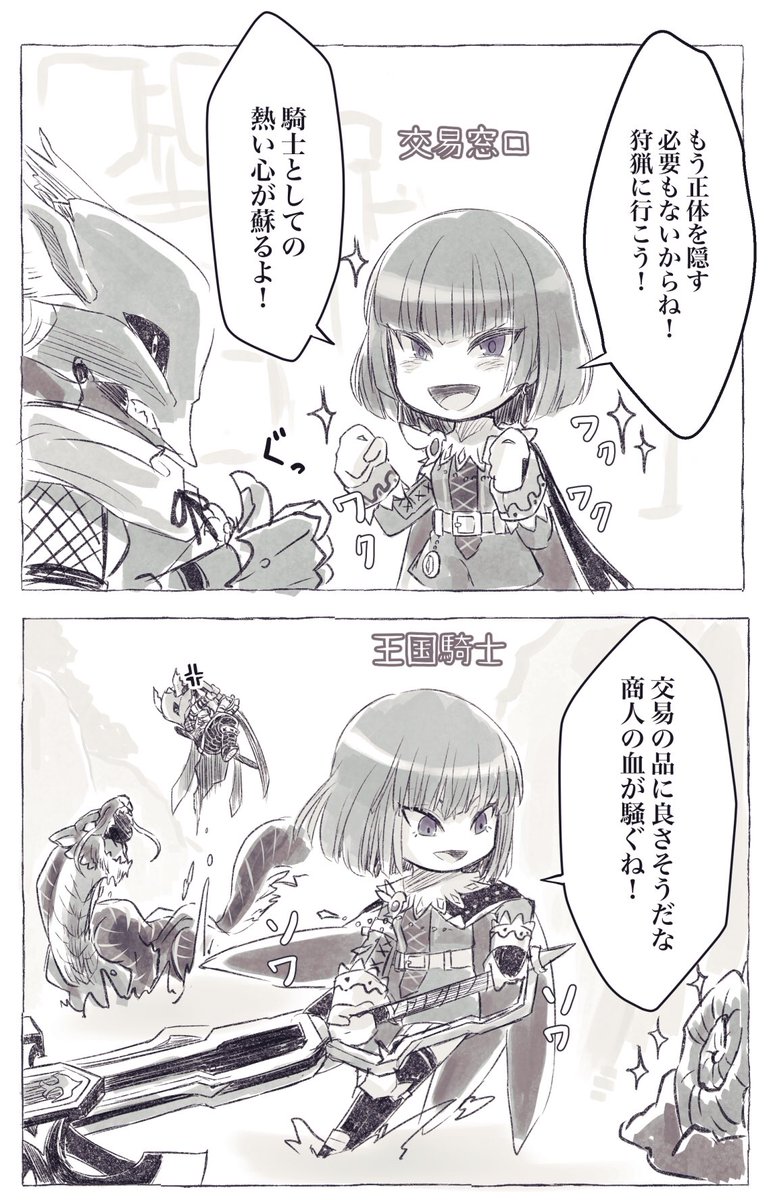ロンディーネさんサンブレイクになってから可愛いになってしまった… わんこをカムラ装備にしちゃうの愛しいんじゃ…でも武器は王国装備なのも良き あとフィオレーネさんに謎に敬語というか丁寧になるのズルいぞ!