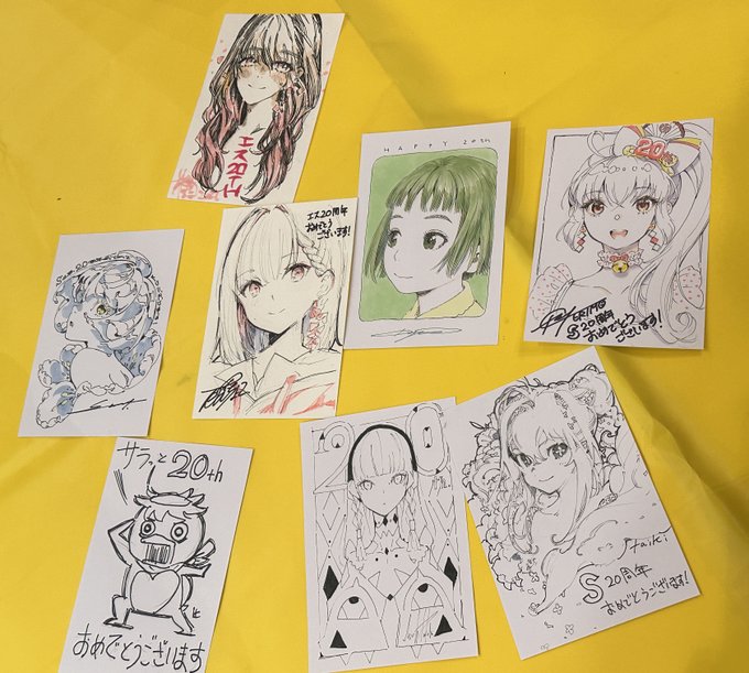 季刊エスのイラスト展に行きました。もう20年になるのか…。お祝い用にと紙を渡されたので来ていた作家さんたちと一緒の机でお絵かき大会になりました。皆で絵を描くの楽しいな。 twitter.com/kikan_s_ss/sta…