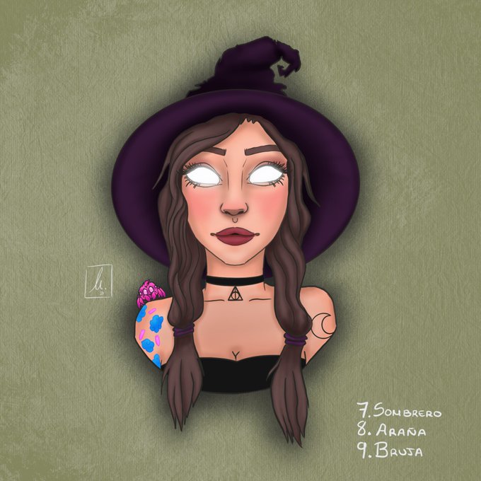 Inktober Dia 7,8 y 9 (voy uniendo para avanzar 😂) 7. Sombrero 8. Araña 9. Bruja #artista #witch #inktober2021 #magic #MAGICTOBER #Sabrina #Halloween #Halloween #digitalart #draw #witchtober2021 #cute #spider