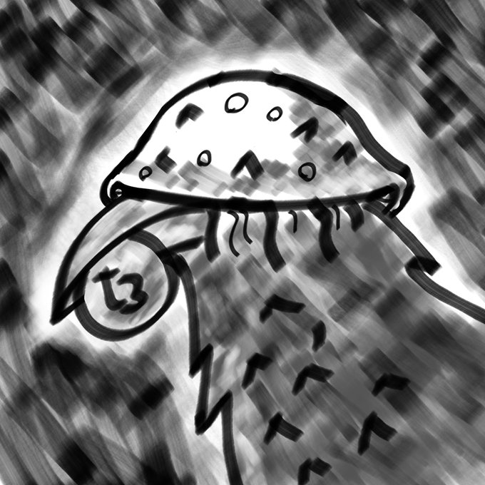 5th day of #inktober. Prompt: #raven + #mushroom Available on #hicetnunc 1/1 edition 3 ꜩ hicetnunc.xyz/objkt/396981 #inktober2021day5 #inktober2021 #hicetnunc2000 #cleannft #nftcommmunity #nftart #tezosnft #HEN #inktober $xtz $tez #xtz #Tezos