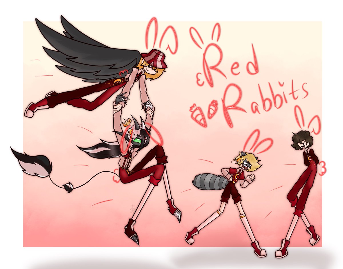 READY FOR CHAOS! LETS GO RED RABBITS!! Designs once again by @carrot_gardens cause her designs are sO GOOD AND I LOVE THEM #ranboofanart #philzaminecraftfanart #wilbursootfanart #tommyinitfanart