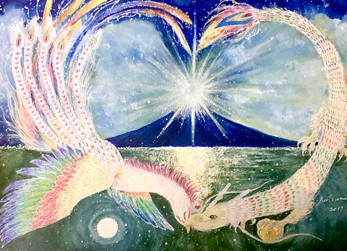 今度は水彩画と金墨を 合わせて表現してみました! 炎の中🔥から舞い上がる 力強いイメージ! 何とか表現できたかな? #水彩画 #金墨汁 #ファイヤーフェニックス #firePhoenix #energyartist鳳花ouka #AtelierWhitePhoenix #イラスト好きさんと繋がりたい #イラストレーション