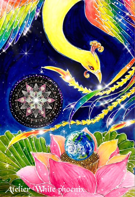 母星に降り注ぐ生命の雫💧 今日も一日お疲れ様でした 明日は新月ですね! 皆様の想いが星に 届きますよう 心よりお祈り致します✨🌏✨ #虹色の翼を持つ鳳凰 #母星に降り注ぐ生命の雫 #水彩画 #水彩色鉛筆 #energyartist鳳花ouka #イラストレーター #イラストレーターと繋がりたい