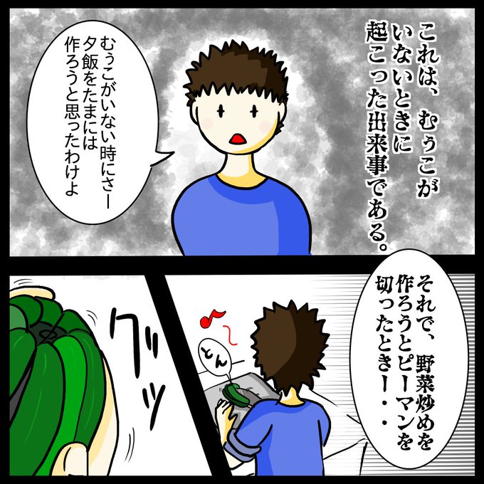 ブログ更新しました。 日常漫画で恐ろしいピーマンのお話。インスタで丸かじり勧めていたけど出来なくなった。 丸かじり派の皆様もどうかご注意下さいませ。包丁はこう言うのを避けるためにあるんだね。 #エッセイ #漫画が読めるハッシュタグ #日常漫画