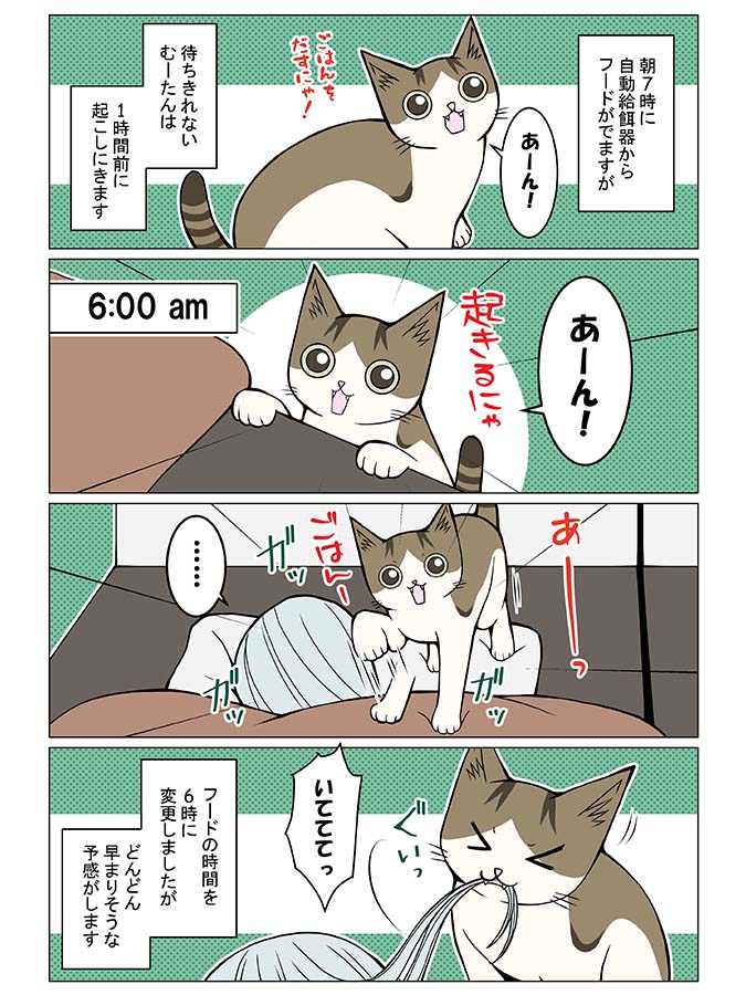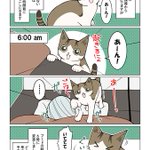「朝は甘えん坊」 🟦最新話と過去作は「ニコニコ静画(マンガ)」で読めます⬇️ seiga.nicovideo.jp/comic/57619 #猫 #猫漫画 #コミックエッセイ #エッセイ漫画 #漫画が読めるハッシュタグ #ニコニコ漫画 #猫の居る暮らし #猫のいるくらし