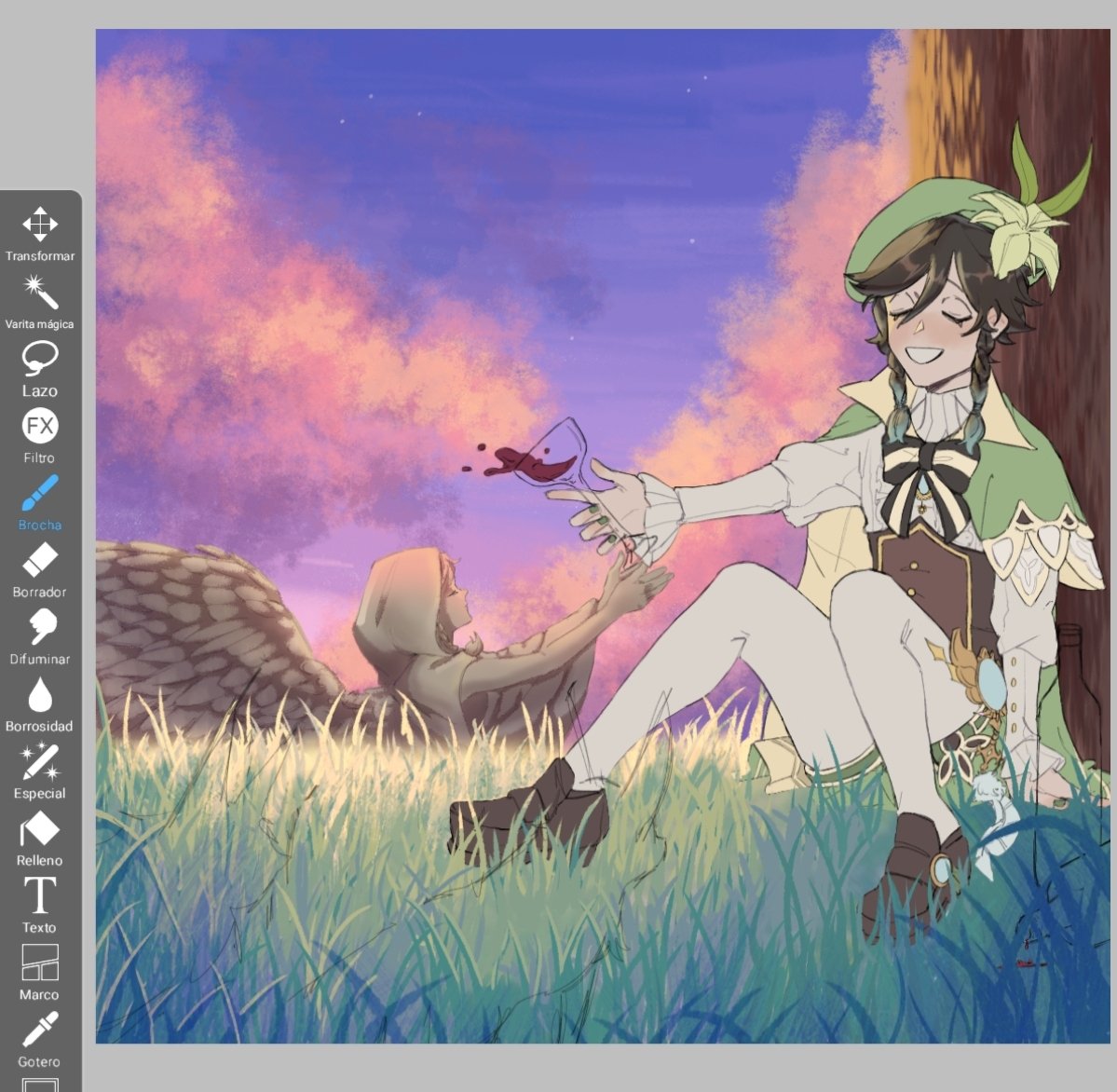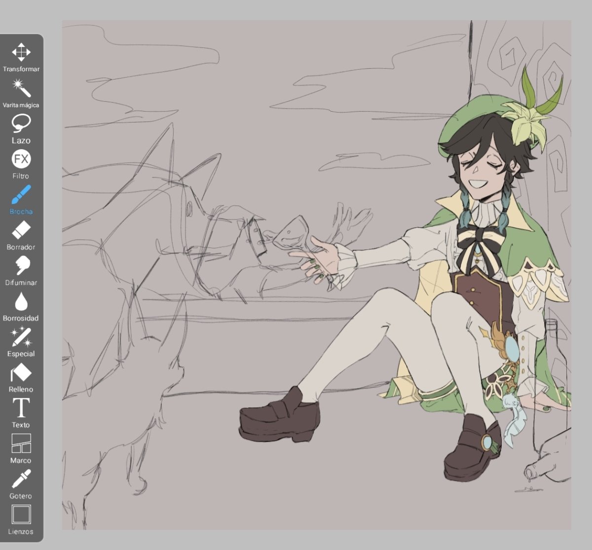 Para el concurso de #Venti 🍃🍃 Ambas botellas se las robo a Diluc🐱🐱🐱 #GenshinImapct #GenshinImpactfanart #FANART