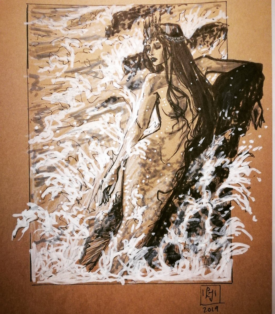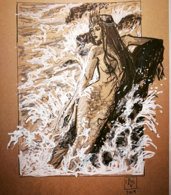 Inktober 20 - Ved-ava, Finnish goddess of water #inktober2019 #inktober #goddess #mermaid #vedava #watergoddess #seagoddess #inkdrawing #ink