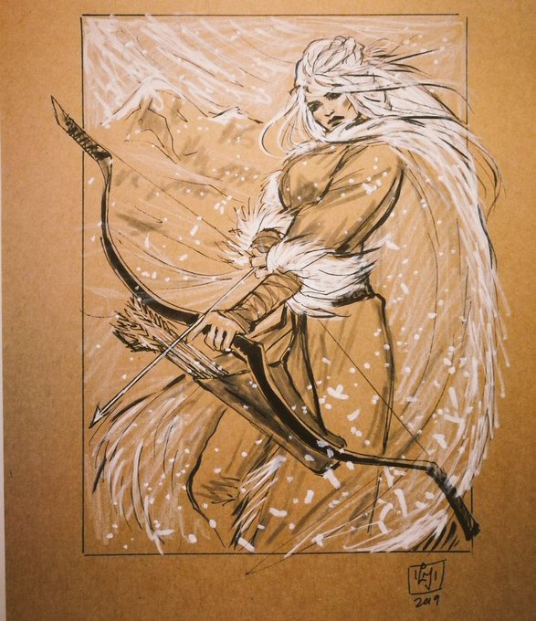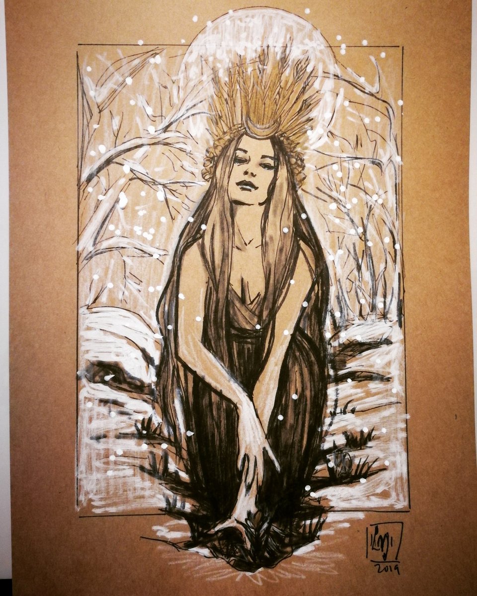 Inktober 21 - Skaði, Norse goddess of winter, hunting, skiing and mountains #inktober2019 #inktober #goddess #skadi #skaði #wintergoddess #winter #norse #inkdrawing #ink