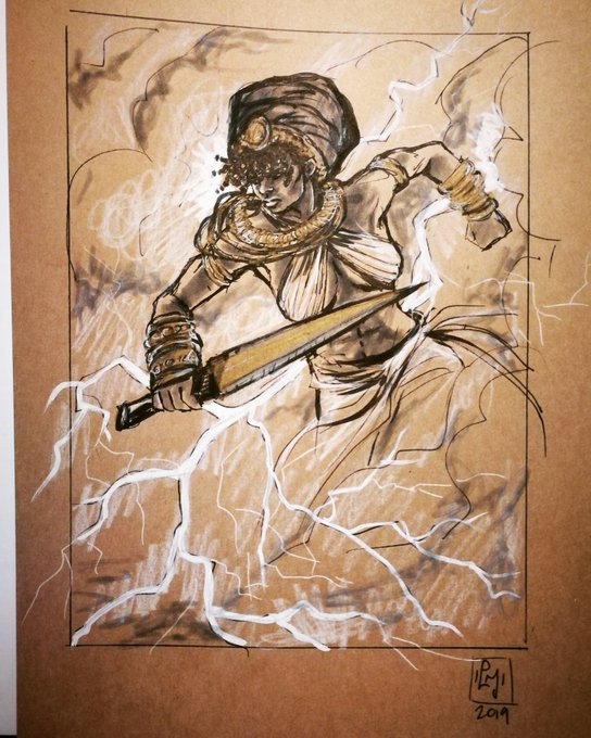 Inktober 23 - Ọya, goddess of lightning, winds and storms, an unbeatable warrior #inktober2019 #inktober #goddess #oya #stormgoddess #orisha #warriorwoman #inkdrawing #ink
