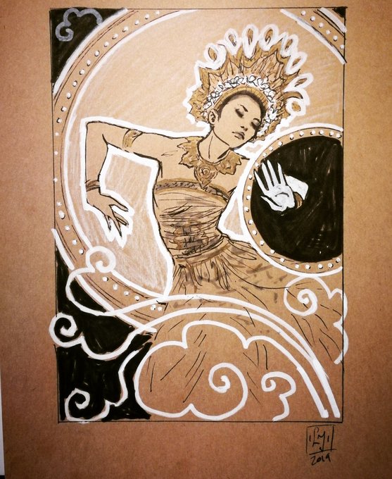 Inktober 24 - Dewi Rathi, Hindu lunar and lunar eclipse goddess of Java and Bali #inktober2019 #inktober #goddess #dewirathi #lunargoddess #eclipse #moongoddess #java #bali #inkdrawing #ink