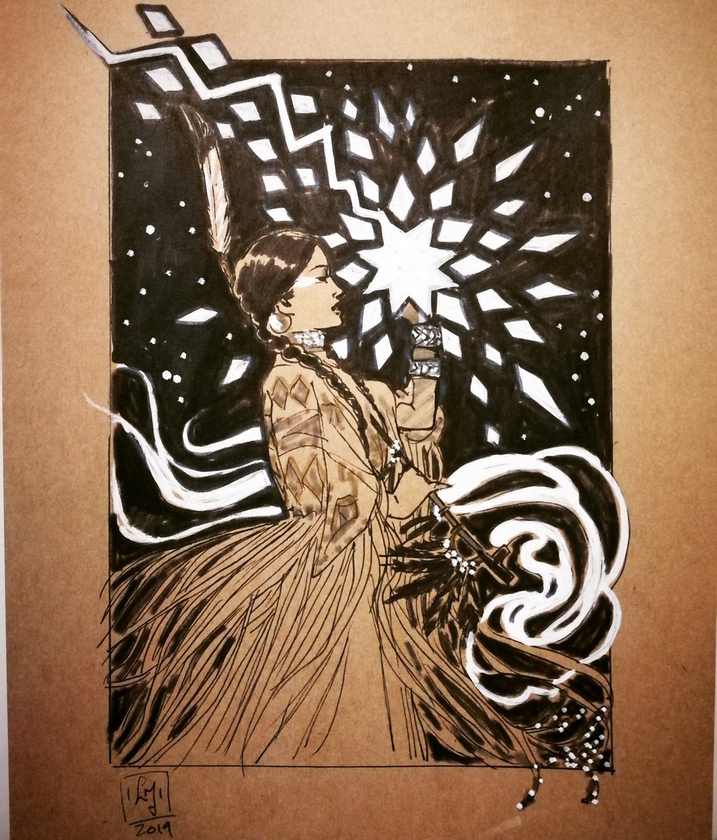 Inktober 25 - Wohpe, Lakota goddess of peace #inktober2019 #inktober #goddess #wohpe #peace #lakota #spirit #fallingstars #inkdrawing #ink