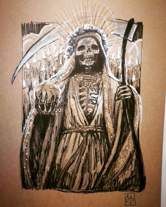 Inktober 31 - Santa Muerte, Our Lady of Holy Death, Mexican and Mexican-American goddess of healing, protection and safe delivery to the afterlife. Ending #inktober2019 🖤💀✍️ #inktober #goddess #santamuerte #death #mexican #idol #inkdrawing #ink