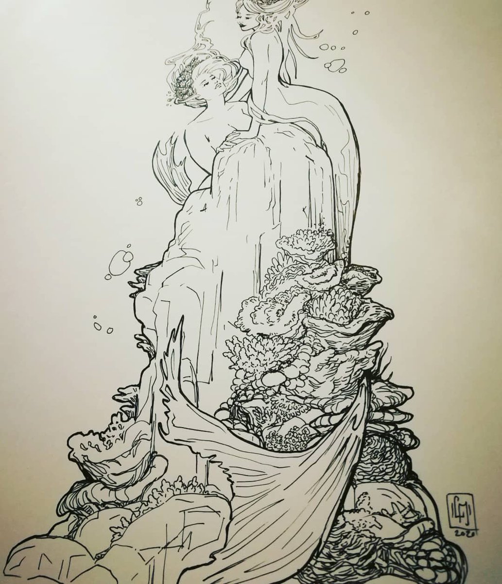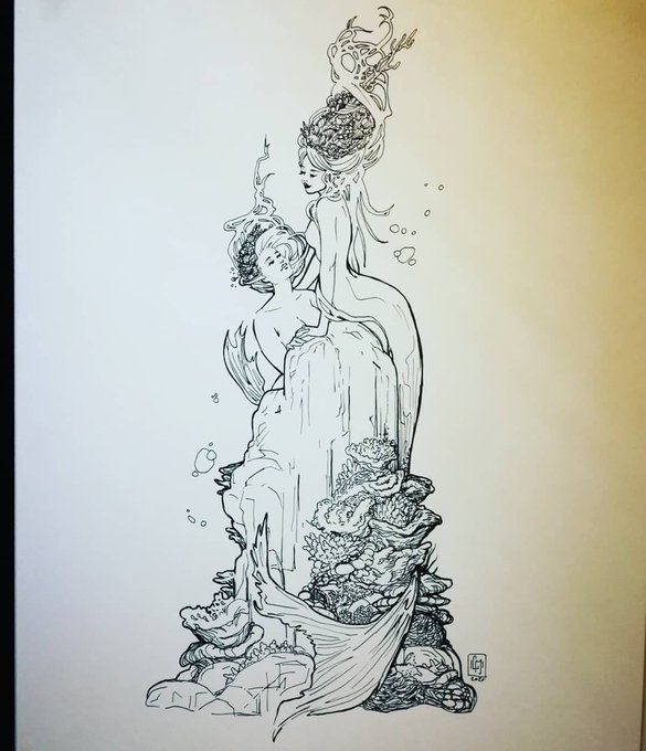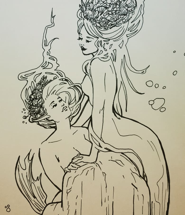 Some romantic mermaids today for #mermay 💖 nice to ink something just for fun #artnouveau #ink #mermay2020 #mermaids