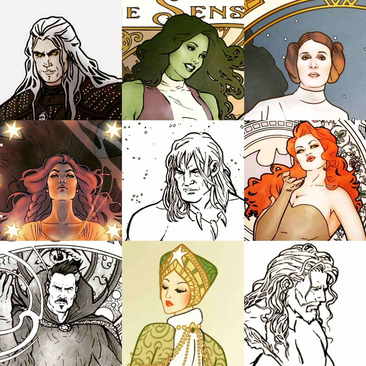 Faces/characters/people I have drawn #faceyourart challenge - digital and traditional inking. #faceyourartchallenge #fanart #artnouveau #illustration