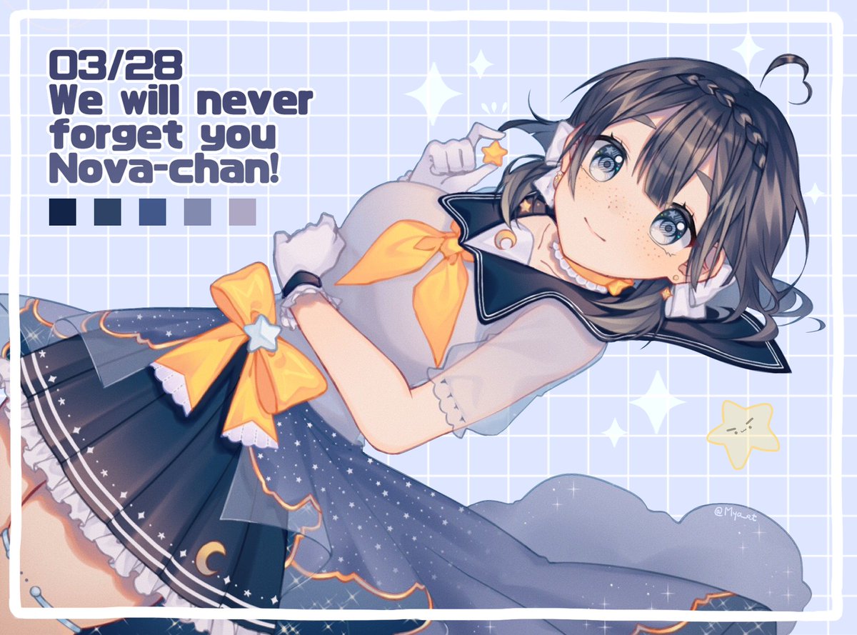 171 1367 Kachow! For Nova-chan's one year graduation anniversary (03/28), I made a reference sheet featuring all her outfits and three high res. transparent bust shots. Enjoy! 🪐💙 #のゔぁーと 22/03/29 00:32