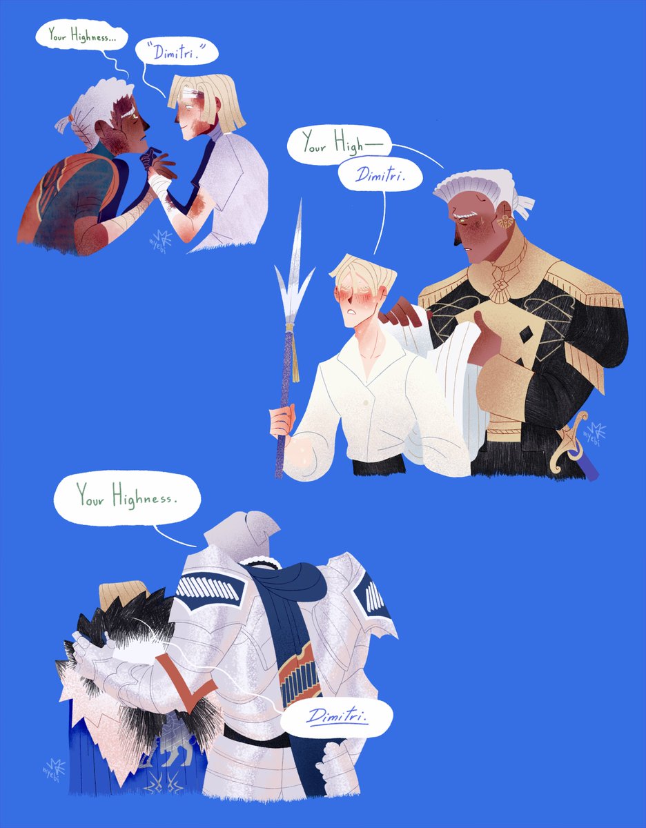 I just recently started playing FE3H and completely fell in love with the Blue Lions. I love all my cubs but Dimitri and Dedue are something else 💛 #FireEmblemThreeHouses #DimitriAlexandreBlaiddyd #DedueMolinaro #dimitri #dedue #FE3H #dimidue #FE #frenchart #ArtistOnTwitter