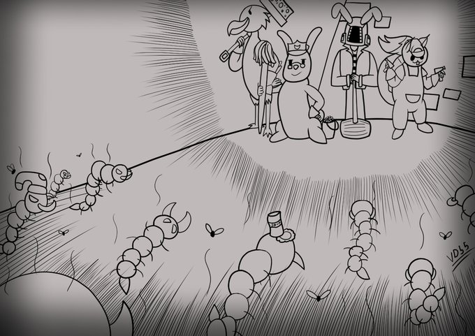 Desde el fondo del basurero unos seres malolientes vienen a ensuciar un buen lugar!! Pero, por fortuna hay gente que está dispuesta a defenderlo. (12/31) "Junk" #Inktober #inktober2022