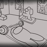 Dentro de un gimnasio, unos curiosos seres entrenan muy duro para convertirse como en sus ídolos. (24/31) "Training" #Inktober #inktober2022