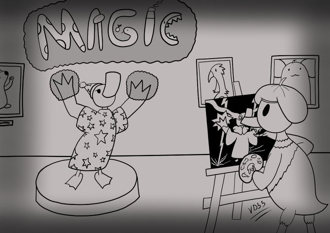 En la galería de arte, un par de patos hicieron un encuentro para un poster. Le pidieron que agregará detalles. (19/31) "Double" #Inktober #inktober2022