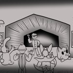 -Muy bien, eso fue todo. Vimos como es el día a día de estos curiosos seres. -Me hubiese gustado ver más, pero, en una noche tan bella. No estaría mal salir a pasear, puede haya algo interesante. -Nos vemos, y tengan una buena noche. (31/31) "Hindsight" #Inktober #inktober2022
