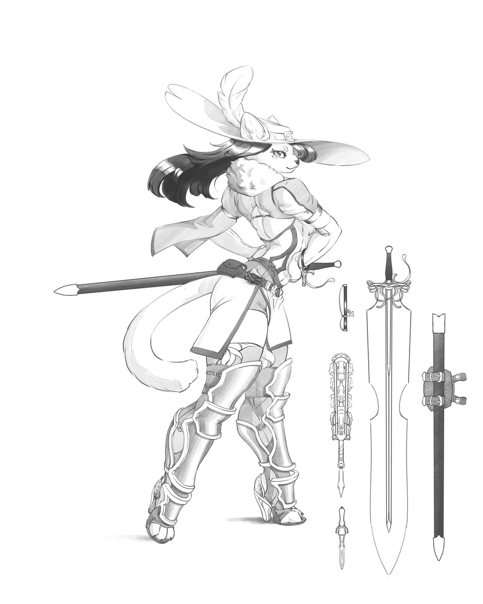 After two week Hiatus i decide to go back to my Sketch of V9 and Give it a quick work in gray Scale and Develop a bit more the character. Say Hi to Bijou!, a French Origin Monster Hunter (or at least that's what her Role say's in her TV show) #kemono #furryart #digitalart