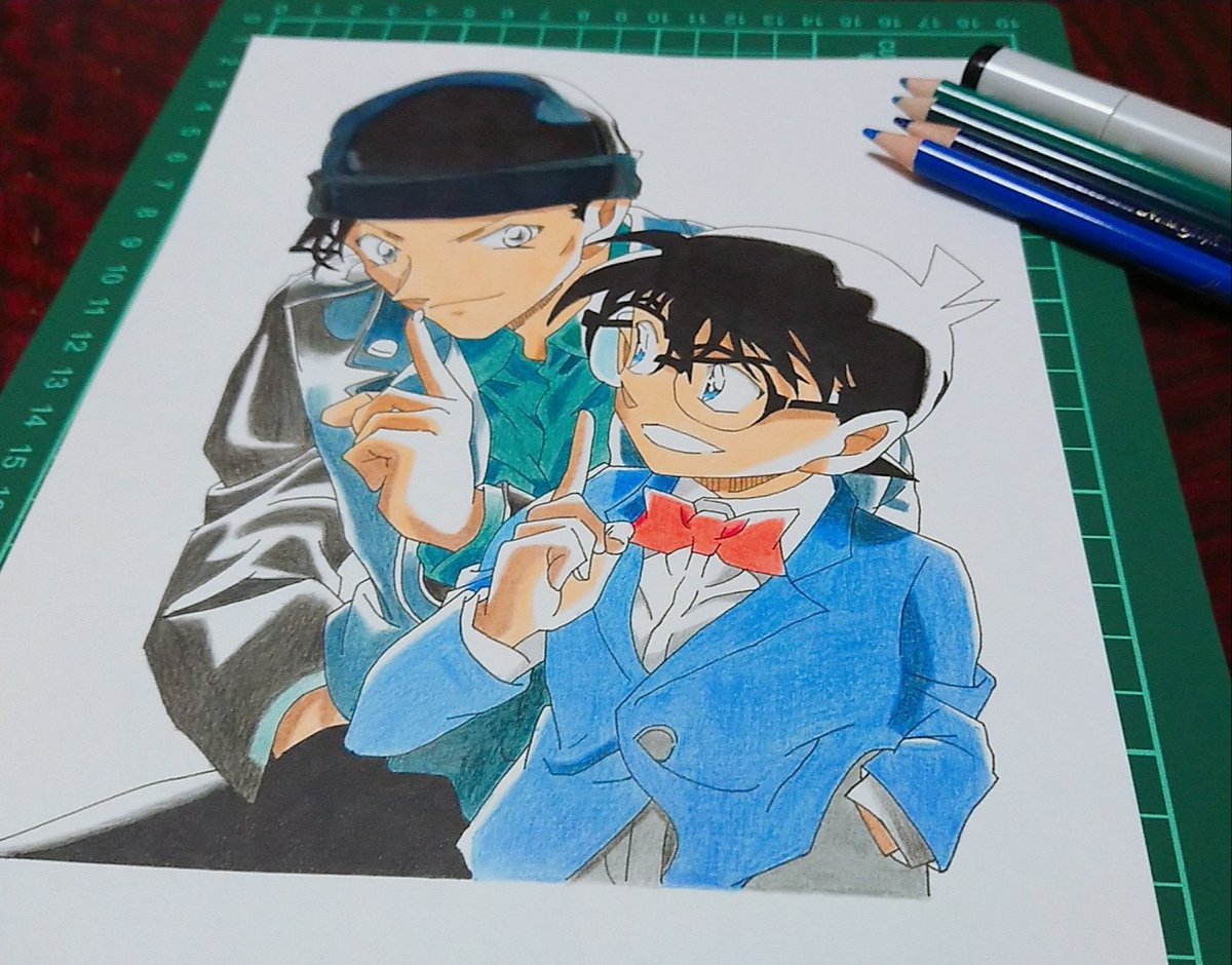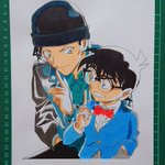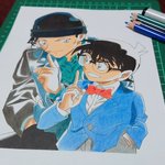 コナン君と赤井さん描きました! (再) #名探偵コナン #江戸川コナン #赤井秀一 #緋色の弾丸 #模写 #色鉛筆 #絵描きさんと繫がりたい