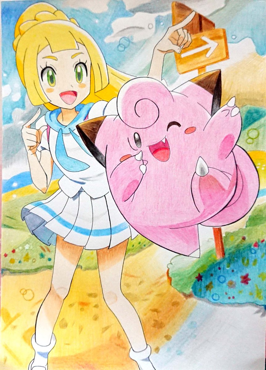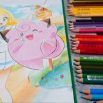 色鉛筆でポケカのピッピ&リーリエ描きました! 途中で休み挟んだりしたのでムラは大目に見て…(言い訳) よければいいねお願いします_(._.)_ #模写 #色鉛筆 #絵描きさんと繫がりたい #ポケモン #ポケカ #リーリエ