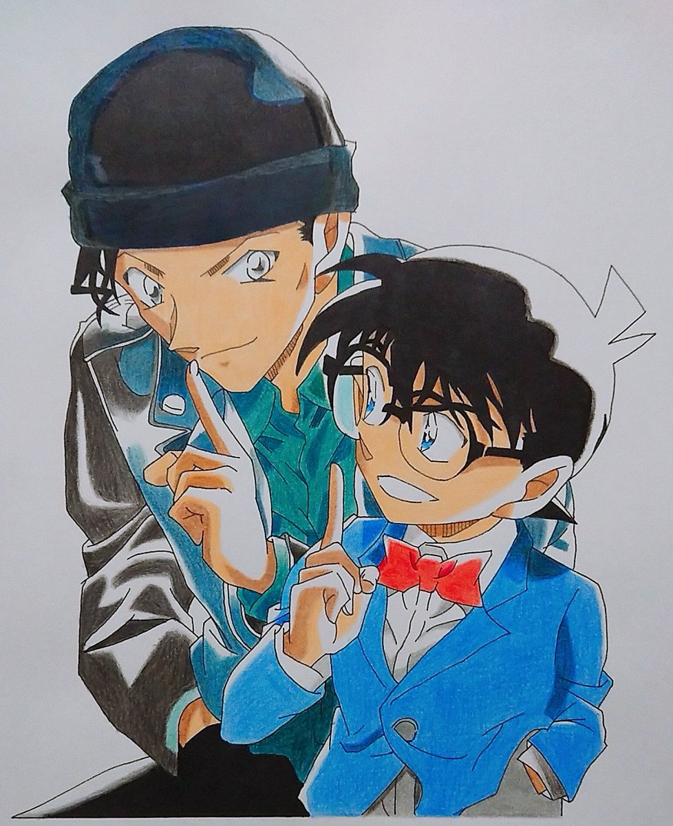 コナン君と赤井さん描きました! 映画は延期になりましたが再開されるまで頑張りましょう! #名探偵コナン #江戸川コナン #赤井秀一 #緋色の弾丸 #模写 大体 #色鉛筆 #絵描きさんと繫がりたい
