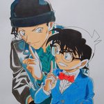 6 45 コナン君と赤井さん描きました! (再) #名探偵コナン #江戸川コナン #赤井秀一 #緋色の弾丸 #模写 #色鉛筆 #絵描きさんと繫がりたい 20/09/23 20:25