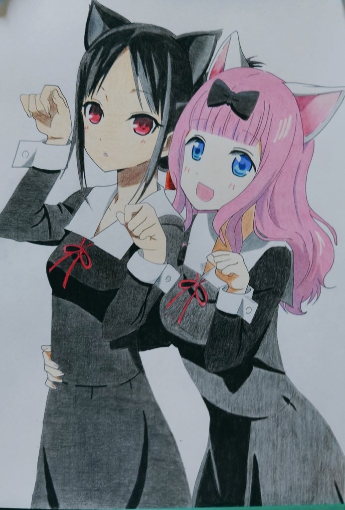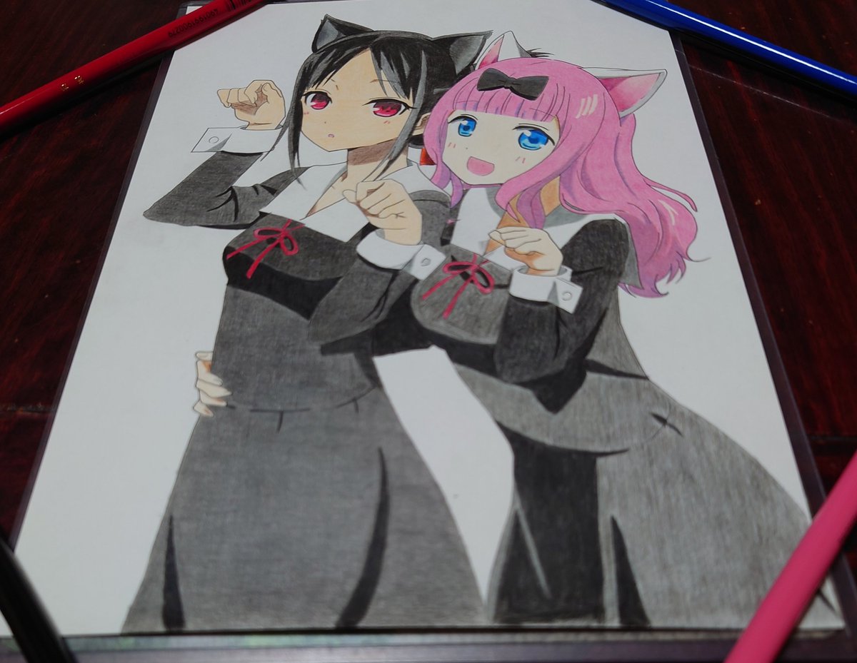 4 21 色鉛筆でかぐやさんと藤原書記描きました! 受験等で中々進まず、アホほど時間かかりましたが、見ていただけると嬉しいです #かぐや様 #模写 #色鉛筆 #絵描きさんと繋がりたい 21/02/19 21:59