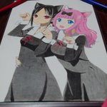 色鉛筆でかぐやさんと藤原書記描きました! 受験等で中々進まず、アホほど時間かかりましたが、見ていただけると嬉しいです #かぐや様 #模写 #色鉛筆 #絵描きさんと繋がりたい