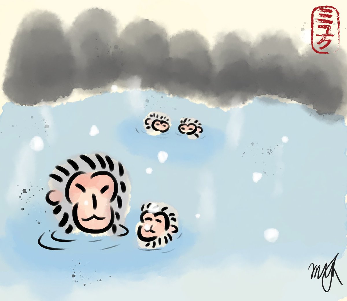 Today we got my personal zodiac sign: Monkey. I love the hot spring monkey's as it als ogave me the chance to work abit on the environment. This was a joy to make. #inktober2021 #Inktober #inktober2021day18