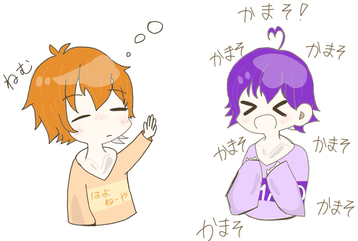 朝に弱いジェルくんと、多分朝強いもりさん💜🧡 #なーくん #ななもりぎゃらりー #ジェルくん #ジェルぎゃらりー