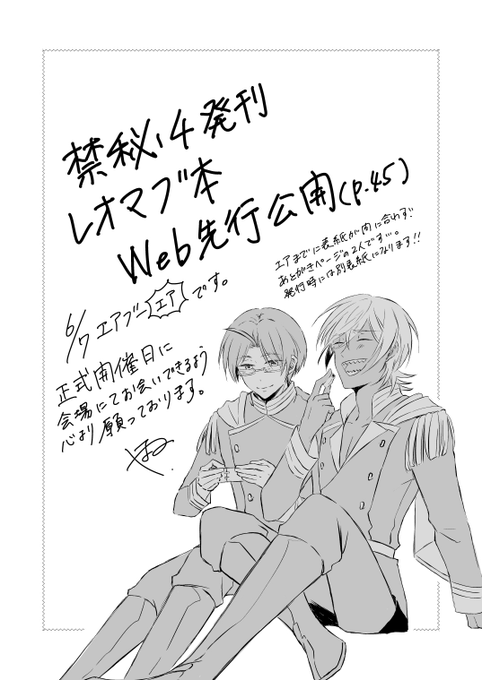 【禁秘4】この夜に一等星【レオマブ】 | やまの #pixiv pixiv.net/artworks/82149… エアブーエア参加です。禁秘4で発行予定の本をwebにて先行公開致します。よろしくお願い致します。